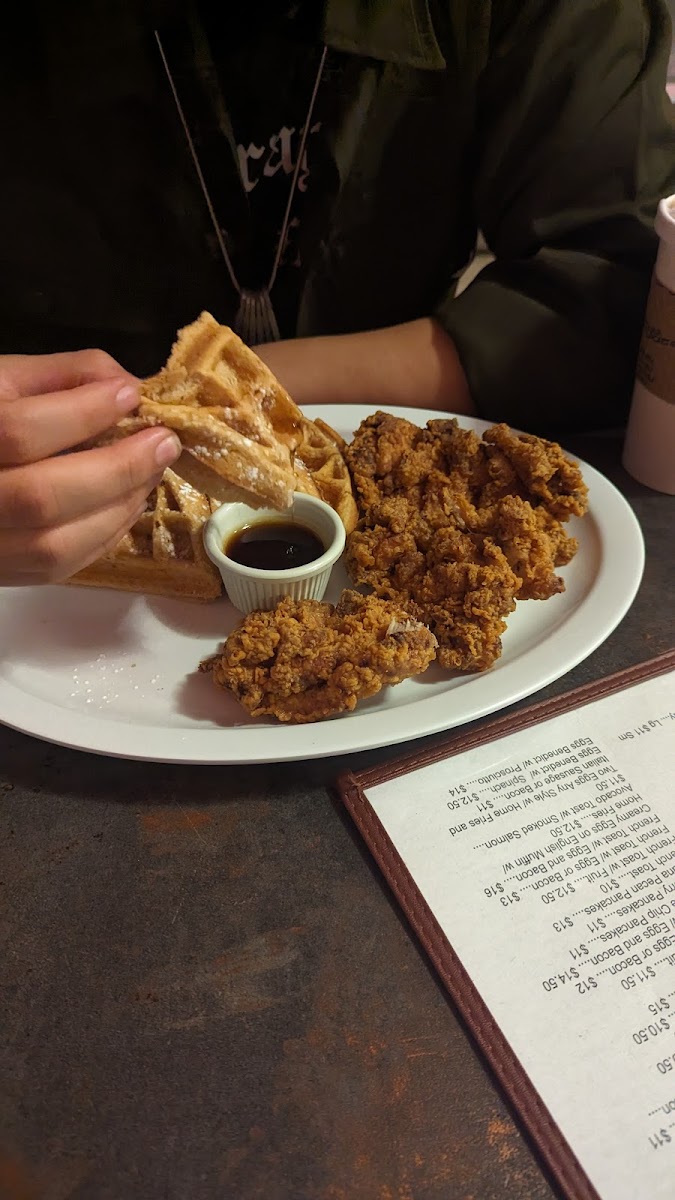 The food was absolutely delicious.. I had a FRIED CHICKEN SANDWICH and it was absolutely amazing. My girl ordered FRENCH TOAST and it was absolutely amazing. The ONION RINGS were delicious as well. Even the basic coffees we ordered were very good. Eddie who works the front, is a great host and his energy is high. I'll definitely be back. Support this place, it's GREAT!!!